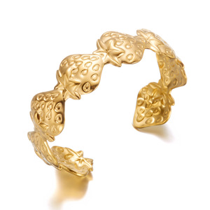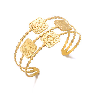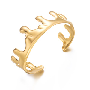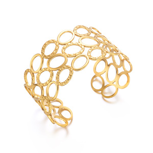 亚马逊热销夸张镂空不规则几何不锈钢开口金色手镯可叠戴套装批发