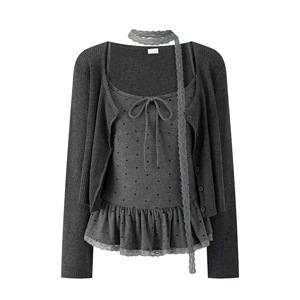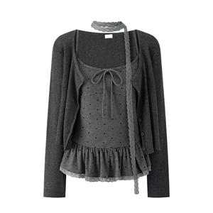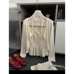 叠穿好物 纯欲风波点蕾丝吊带+开衫外套气质两件套装女