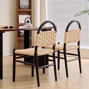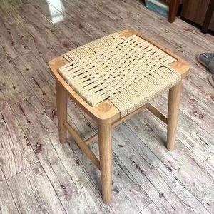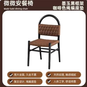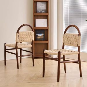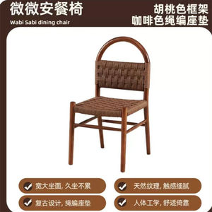 中古实木藤编靠背餐椅家用休闲民宿咖啡创意卧室绳编织化妆书桌凳