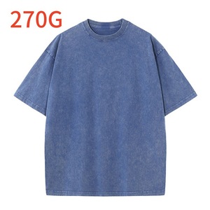 亚马逊跨境美式复古洗水做旧纯棉短袖宽松做旧圆领短袖男女款外贸