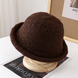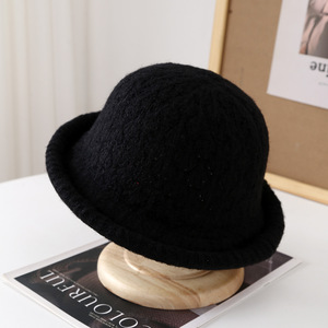 日系镂空卷边针织盆帽女秋季休闲百搭遮阳渔夫帽纯色显脸小礼帽潮