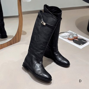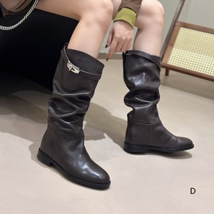 欧洲站女鞋25秋冬简约时尚软植鞣牛皮圆头套筒休闲舒适平底皮长靴