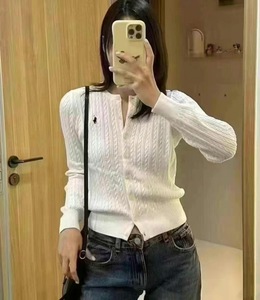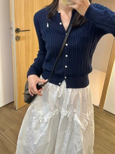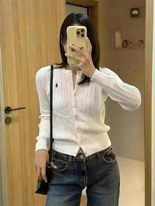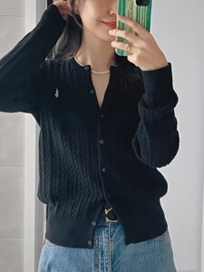 高版本RL拉夫细麻花针织开衫经典小马刺绣显瘦长袖毛衣秋冬百搭