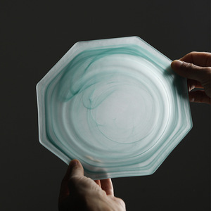 水墨云雾风玻璃盘高级感水果盘家用磨砂高端创意点心盘沙拉碗盘子