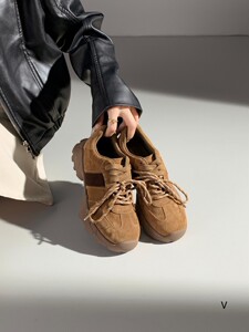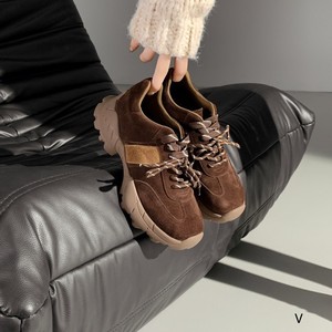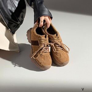 欧洲站女鞋25秋冬时尚软牛反绒皮圆头系带休闲款平底德训鞋慢跑鞋