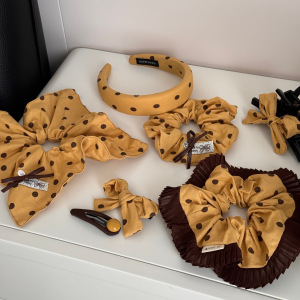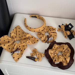 黄色系咖波点大肠发圈新款高级感头绳扎头发方巾皮筋发饰新款