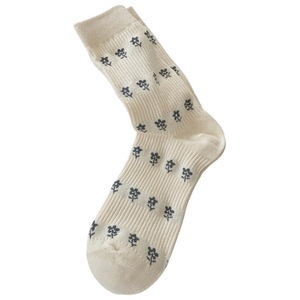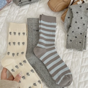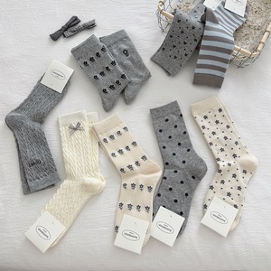 远润家灰色袜子女中筒袜ins潮秋冬miu系小花堆堆袜蝴蝶结长袜