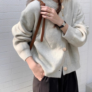 秋冬季毛衣设计外套单排宽松慵懒风纯色针织开衫圆领针织衫上衣女