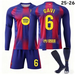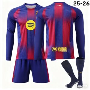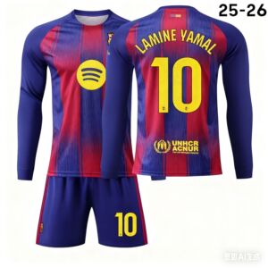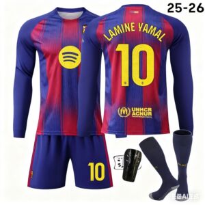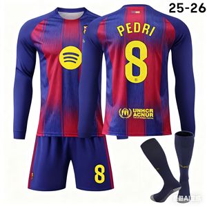 2526巴萨主场球衣长袖10号亚马尔6哈维9莱万跨境秋冬季足球服套装