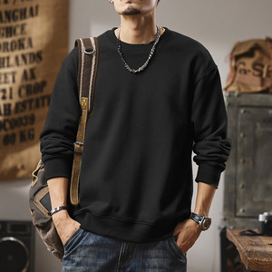 男装秋冬季男士健康布纯色长袖圆领卫衣男休闲潮牌跨境重磅印花