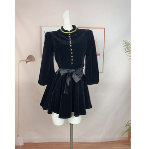 复古【伯拉德千金】赫本风黑色丝绒长袖连衣裙配裙裤秋季2025新品
