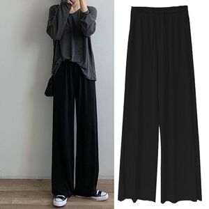 黑白条纹糯米裤女春秋2025新款软糯直筒垂感宽松休闲小个子阔腿裤