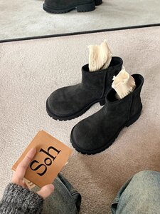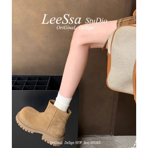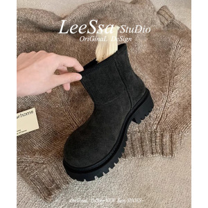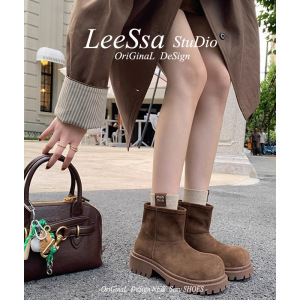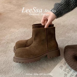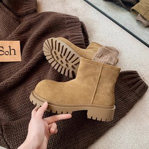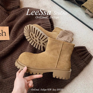 软皮版~卡其色网红大头马丁靴粗跟2025秋季新款厚底雪地靴短靴女