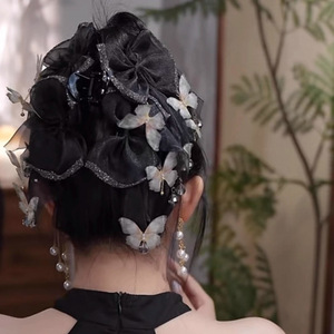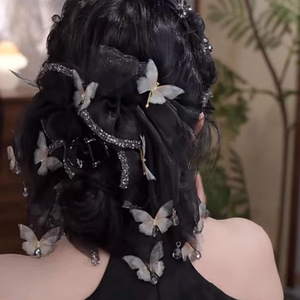 氛围感薄纱流苏蝴蝶抓夹【黑色小号】