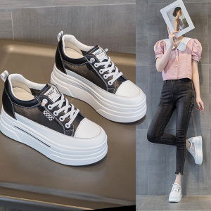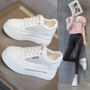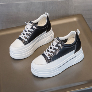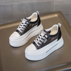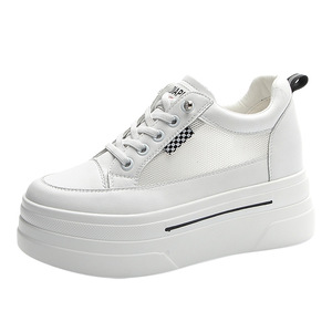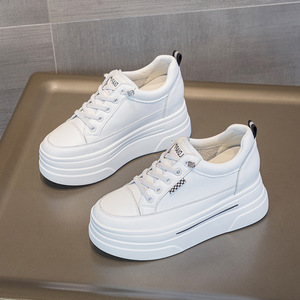 小个子33码厚底内增高休闲小白鞋坡跟低帮真皮免系带百搭女鞋子