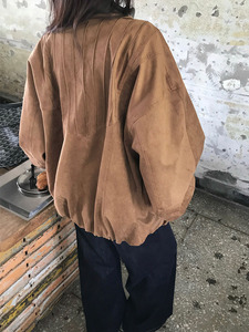 珍妮同款2025秋季经典复古好版型夹克皮衣咖色花苞廓型外套女薄款