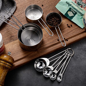 FCM资质不锈钢带刻度量杯量勺8件套咖啡豆香料称线柄量勺量杯套装