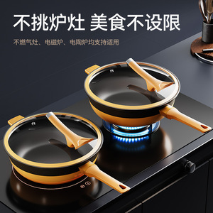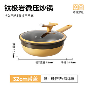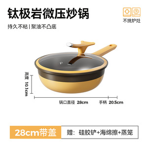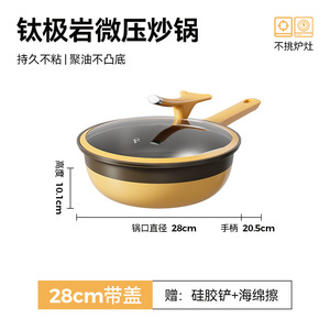 新款钛极岩系列炒锅大容量陶瓷不粘锅家用煎炒锅平底锅不挑炉灶