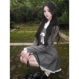 早法式学院风一整套穿搭女蕾丝拼接西服外穿外套高腰半身裙两件套