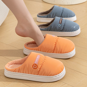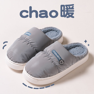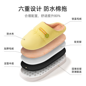 踩屎感棉拖鞋男防滑防水羽绒棉拖鞋男保暖居家厚底毛拖鞋家居批发