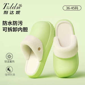 利达妮防水棉拖鞋女冬季2025新款室内家居毛绒保暖可拆卸棉拖外穿