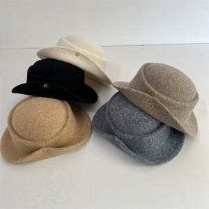 复古折边赫本风羊毛针织礼帽女2025秋冬氛围英伦高级感复古盆帽子
