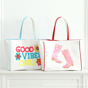 跨境新款托特包大容量简约清新字母设计高货短途旅行小清新