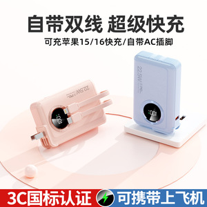 跨境亚马逊自带插头超级快充充电宝自带双线便携迷你数显适用苹果