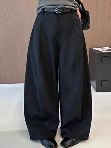 秋季新款立体裁剪廓形阔腿休闲西裤简约百搭宽松透气拖地直筒长裤