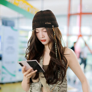 吴宣仪同款韩系小众针织帽新款甜美辣妹出街时尚百搭简约包头帽.