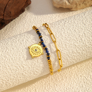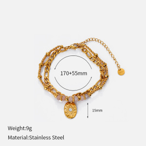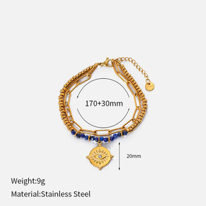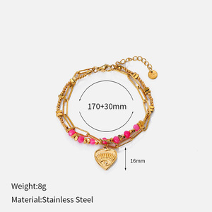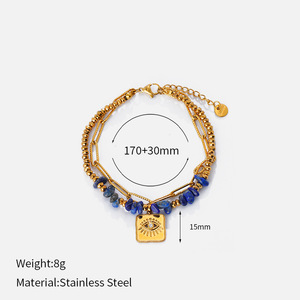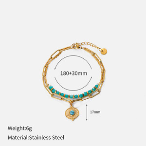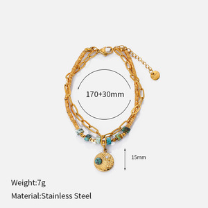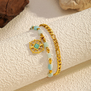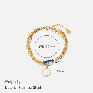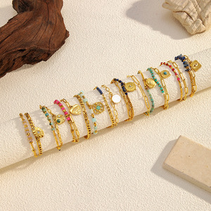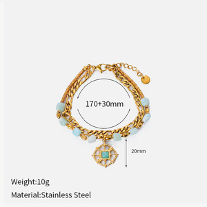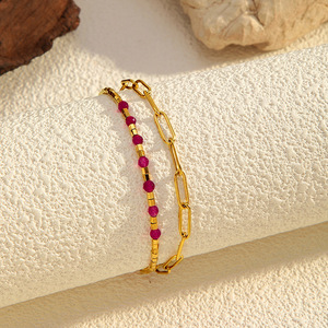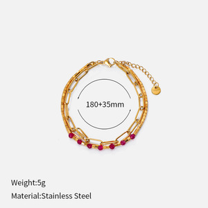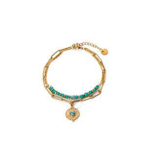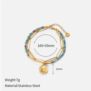 跨境爆款手链天然宝石串珠设计彩色清新k金双层手串手饰吊坠款女