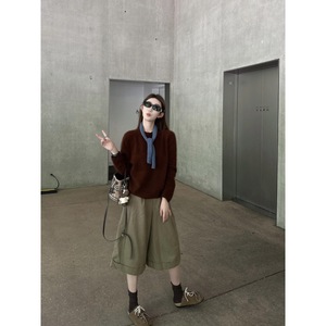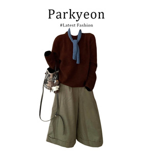 又酷又飒减龄套装女秋季软糯圆领毛衣宽松七分裤两件套