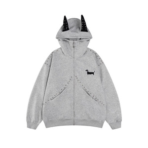 张艺兴同款美式铆钉恶魔卫衣连帽男女春春秋季情侣杜宾犬宽松外套