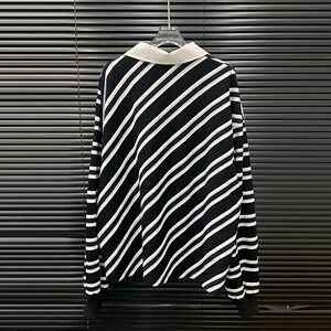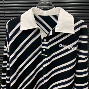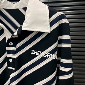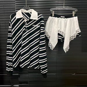 2025早秋新款斜条纹时尚套装女小众polo衫T恤+不规则短裙两件