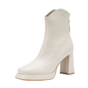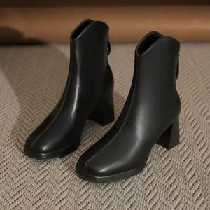 现货~2025新款防水台马丁靴女韩版后拉链高跟复古方头粗跟女靴