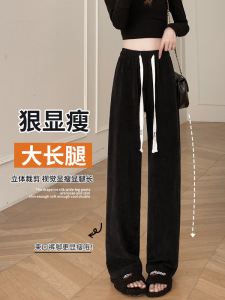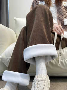 窄版阔腿裤女2025新款秋冬加绒雪尼尔小个子宽松慵懒风休闲直筒裤