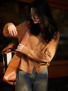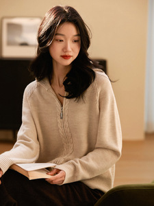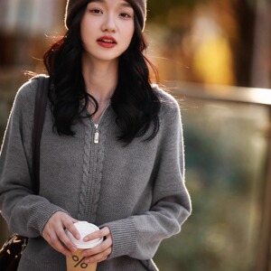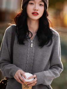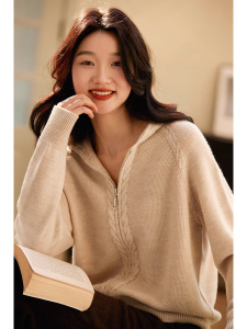 哥家商场同款女装2025秋季双拉链连帽麻花毛衣针织开衫针织外套