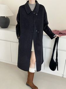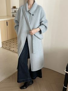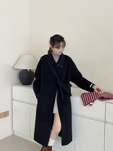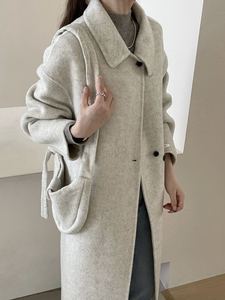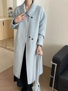 大衣女秋冬新款单排扣韩版双面羊绒大衣长款赫本风大衣女双面羊绒