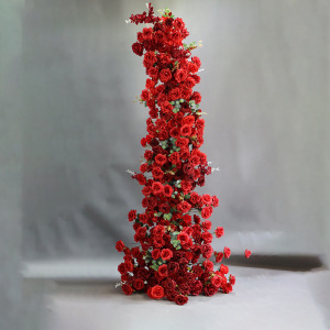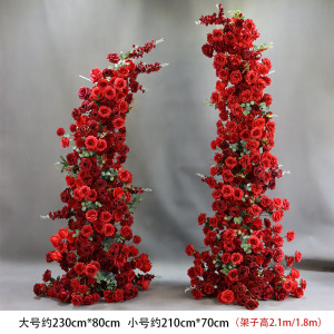 红色拱门婚礼婚庆成品套装饰仿真绢花舞台牛角门中式背景摄影道具