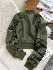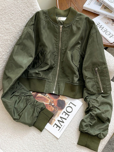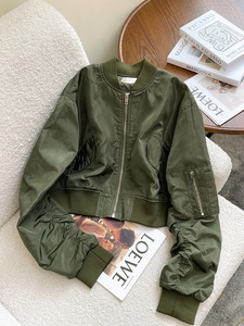 军绿色复古拉链飞行夹克女韩国棒球服外套立领上衣时尚2025春秋