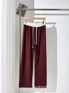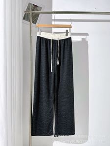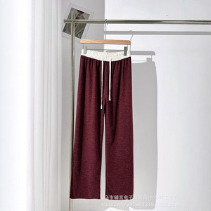 设计感拼色高腰直筒裤女秋冬款慵懒休闲显瘦百搭薄绒阔腿拖地裤