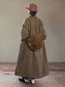 巴恩风风衣秋款线香色苎麻棉袍子百搭长袖连衣裙外套长款C0930
