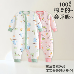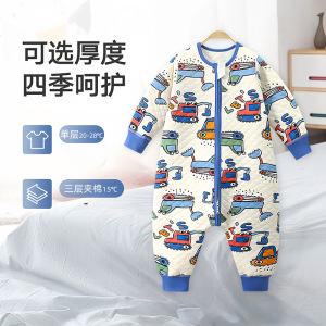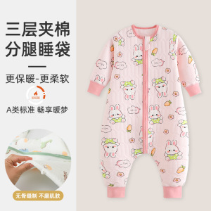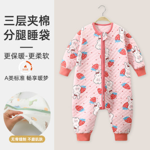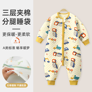 新款儿童睡袋秋冬季宝宝三层夹棉连体睡衣纯棉分腿防踢被家居服
