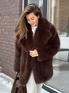 时尚气质宽松舒适纯色中长款皮草大衣外套女2025跨境欧美秋冬新款