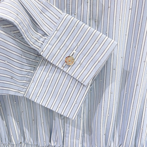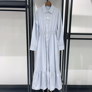 法式小众 2025秋冬大气烫钻条纹POLO领松紧收腰荷叶边连衣裙25815