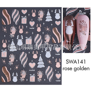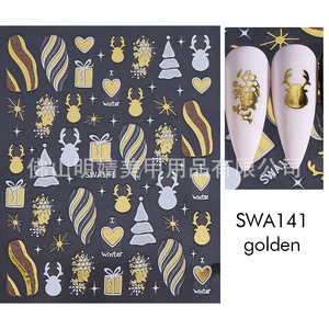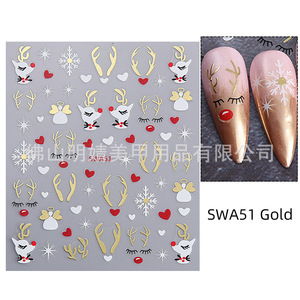 跨境圣诞新款美甲贴纸 ins风金银雪花卡通麋鹿圣诞节礼物背胶贴纸