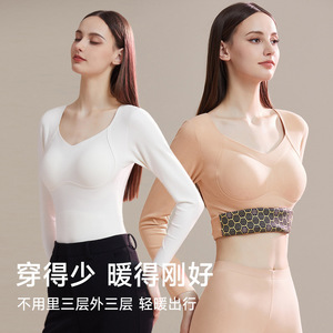 8869加大码保暖秋冬新款无痕打底衫女显瘦上衣带胸垫加厚长袖内衣