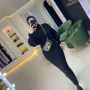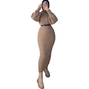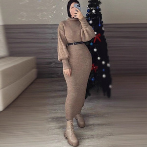 欧美跨境女装2025秋季新款居家休闲高领针织修身毛衣裙收腰包臀裙