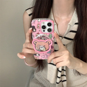 磁吸-粉底满屏小动物 壳+小熊头像摇摇乐支架