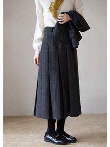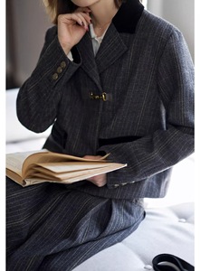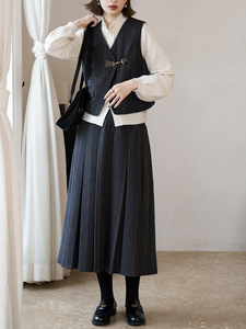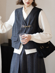 「白描」“霍格沃兹”复古格纹毛呢西装/压褶半裙/马甲套装
